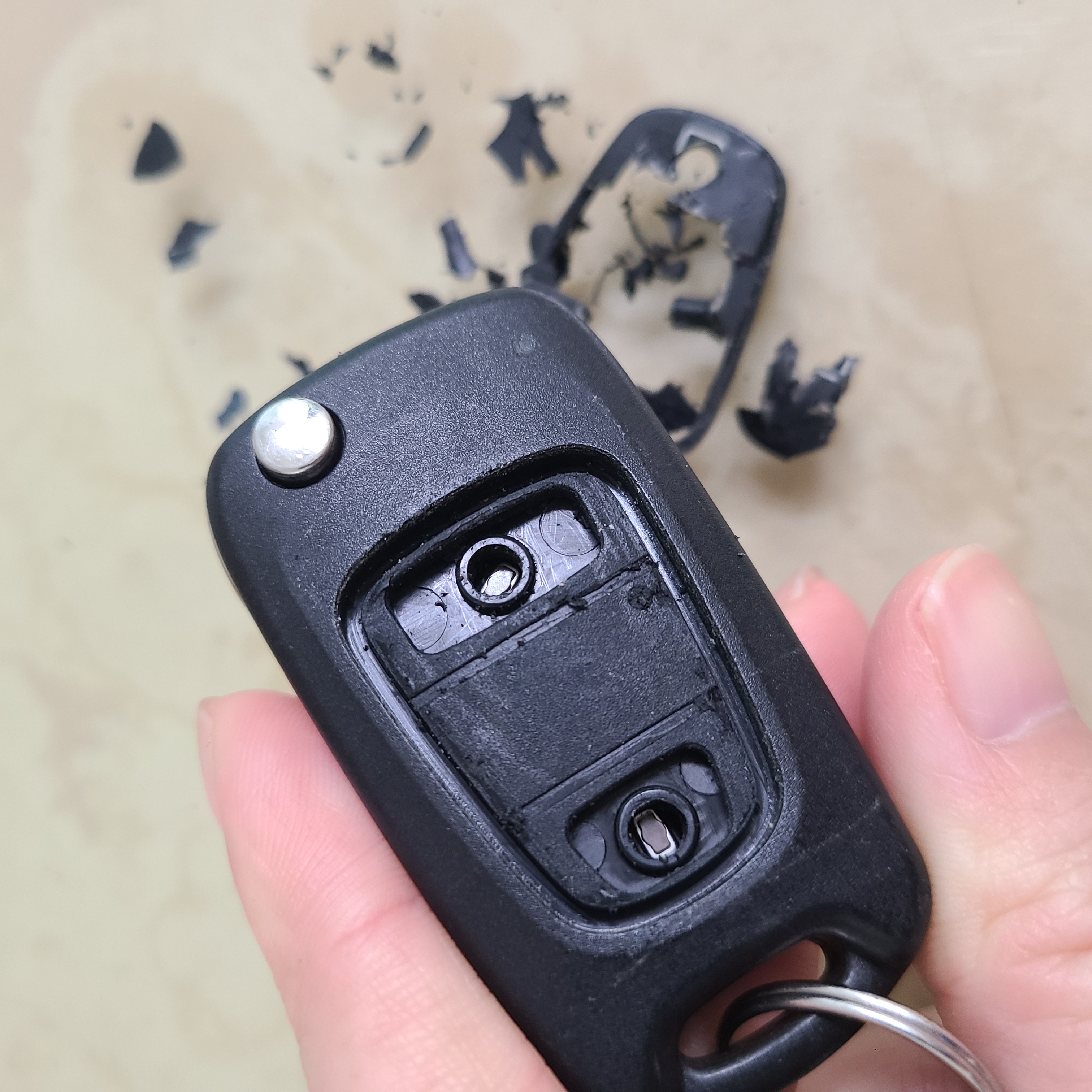 기존에 망가진 고무 교체하기 위해서 차키에서 고무 뜯어내기