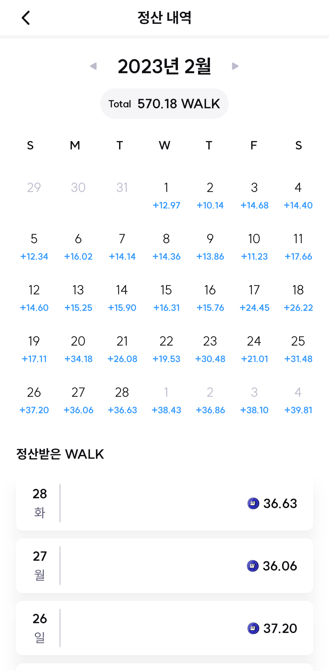 내가 슈퍼워크 시작한게 딱 2023년 2월 1일부터였는데 하루에 모으는 WALK가 17배 정도 성장했다.
