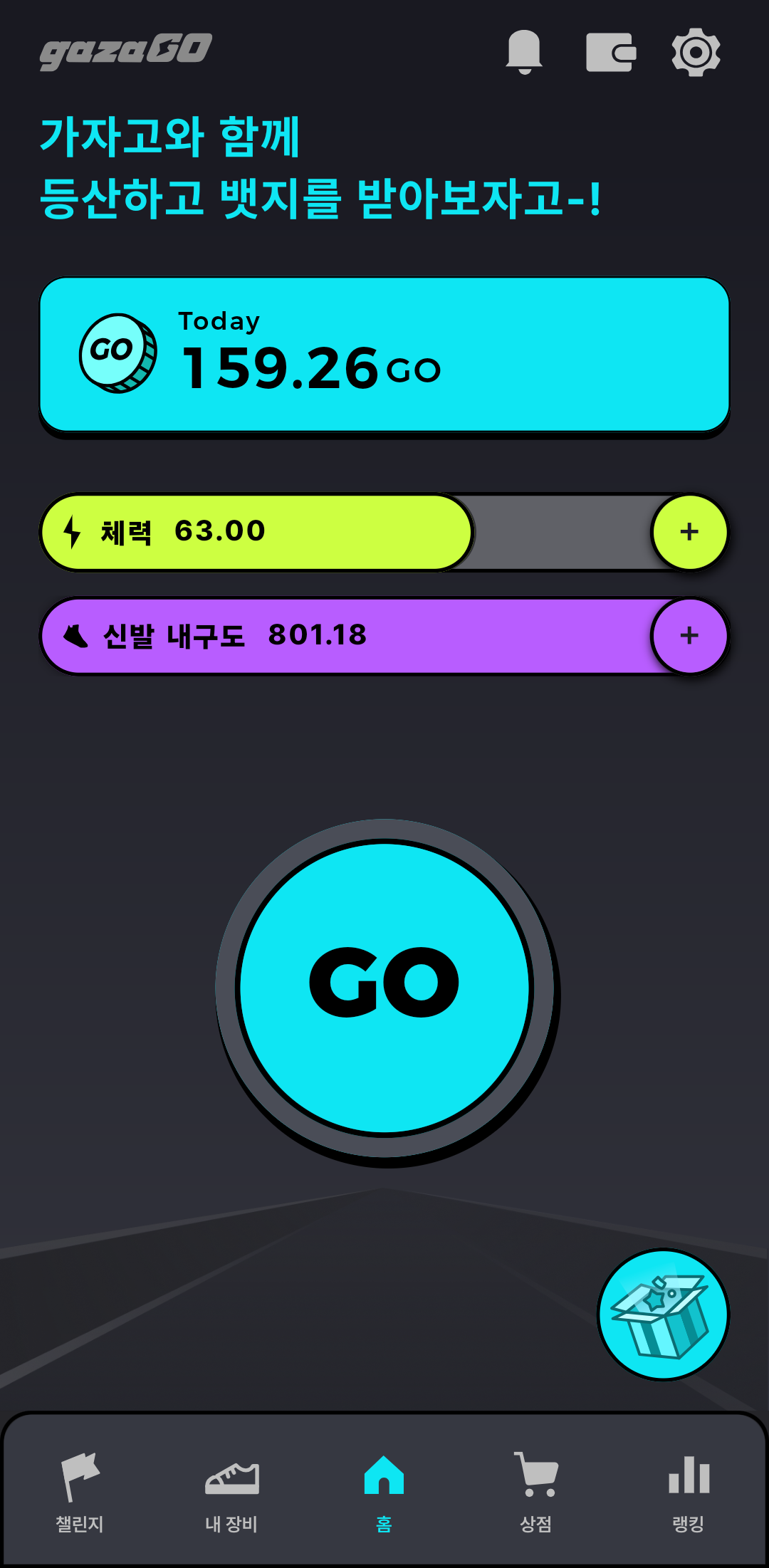 가자고는 걸을때 주는 GO 점수가