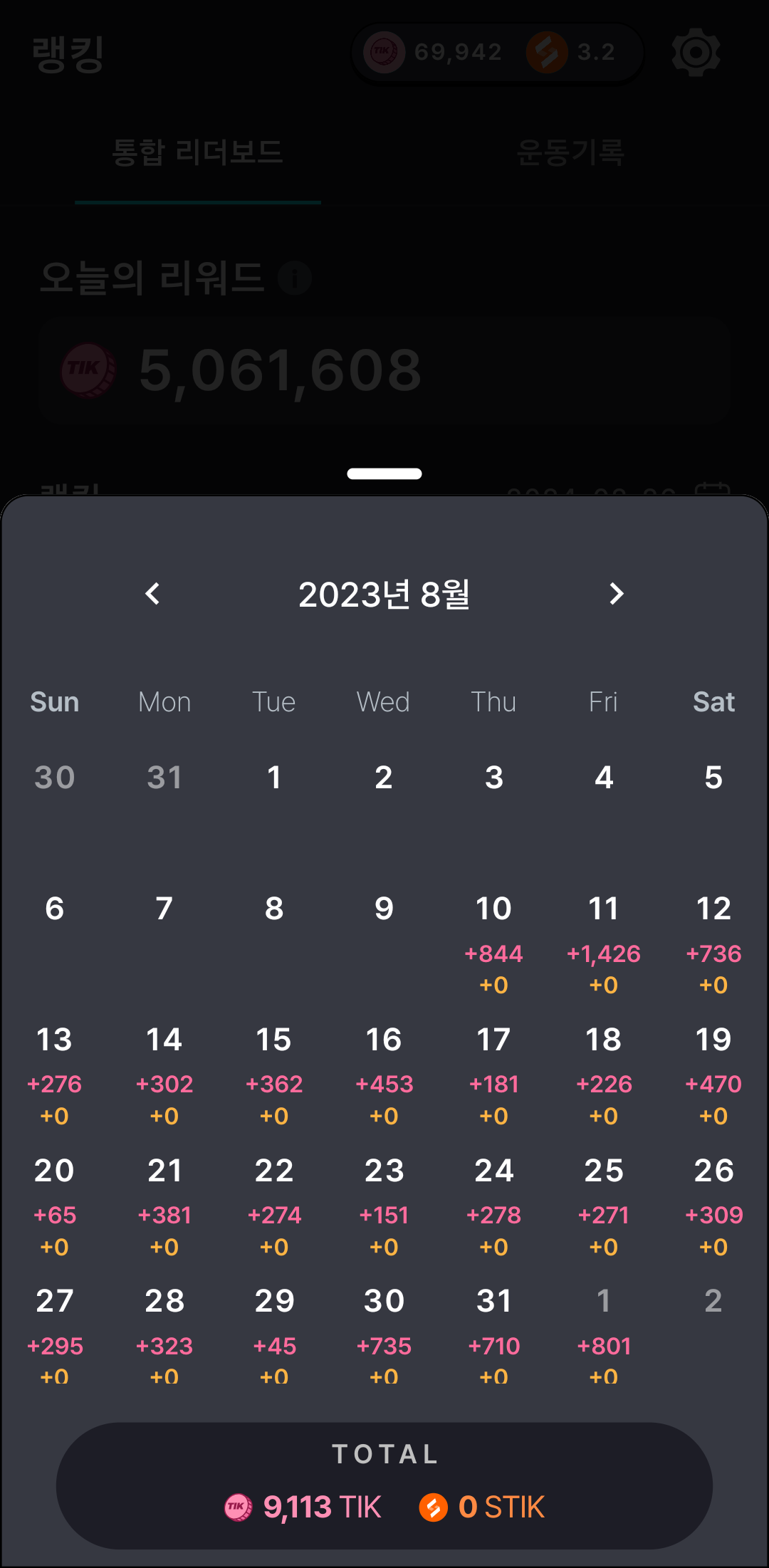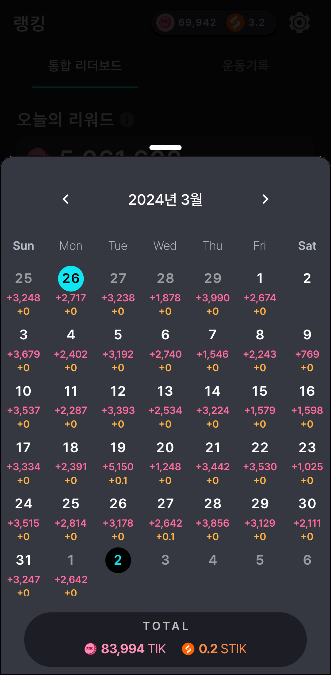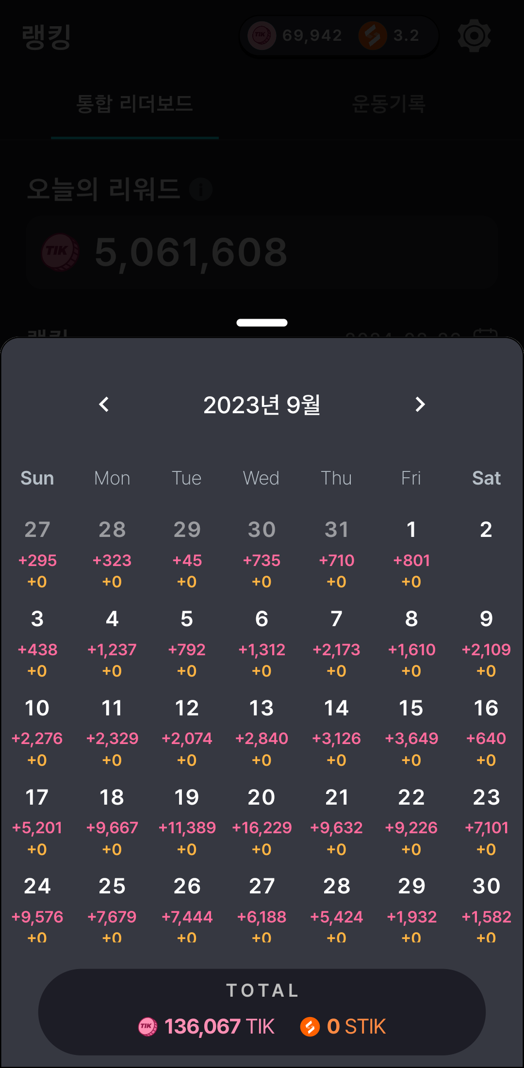 자정이 지나 TIK 코인으로 정산되어 지금된다.