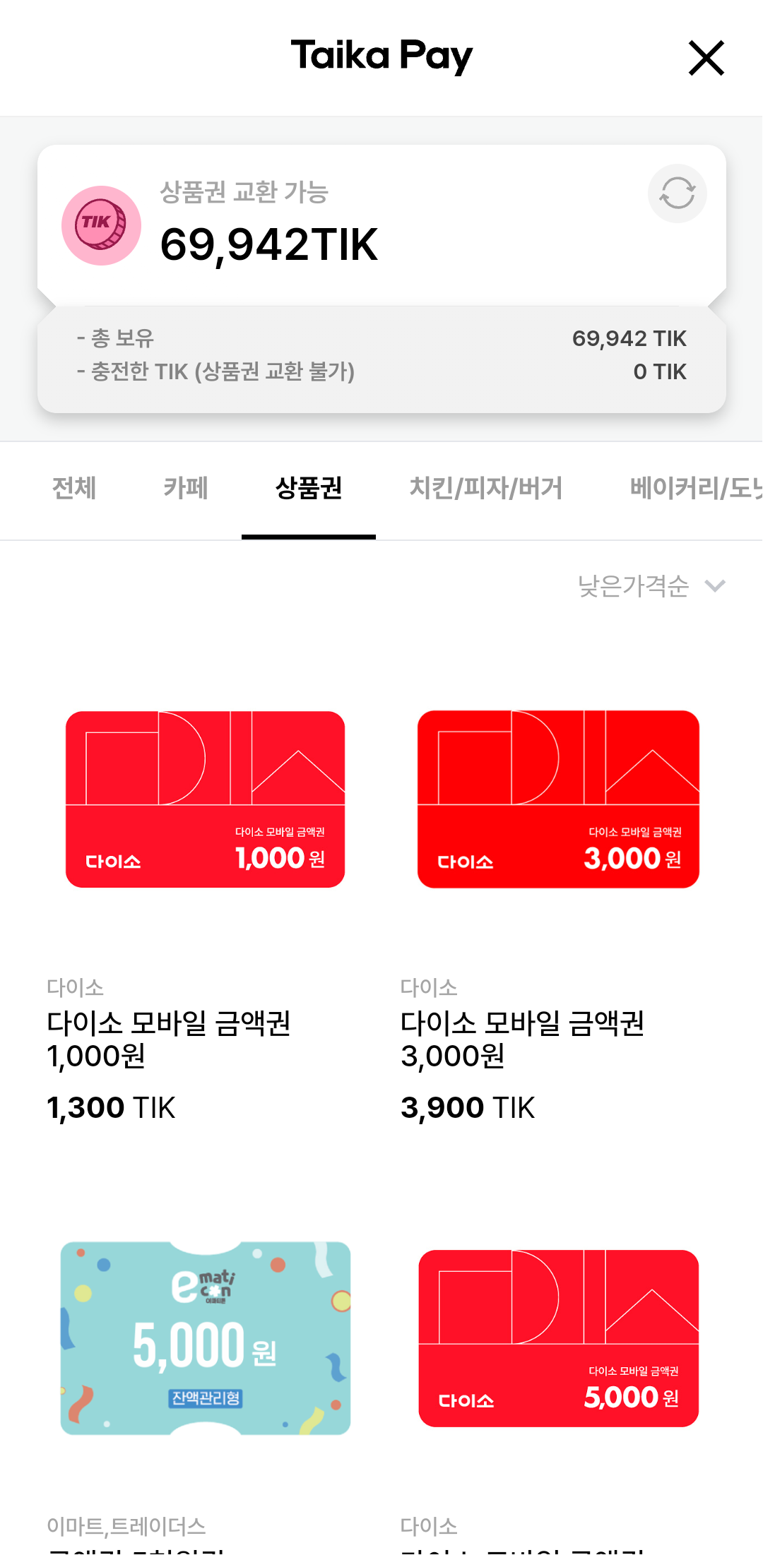 현금화를 안하고 기프티콘으로 사용중이라