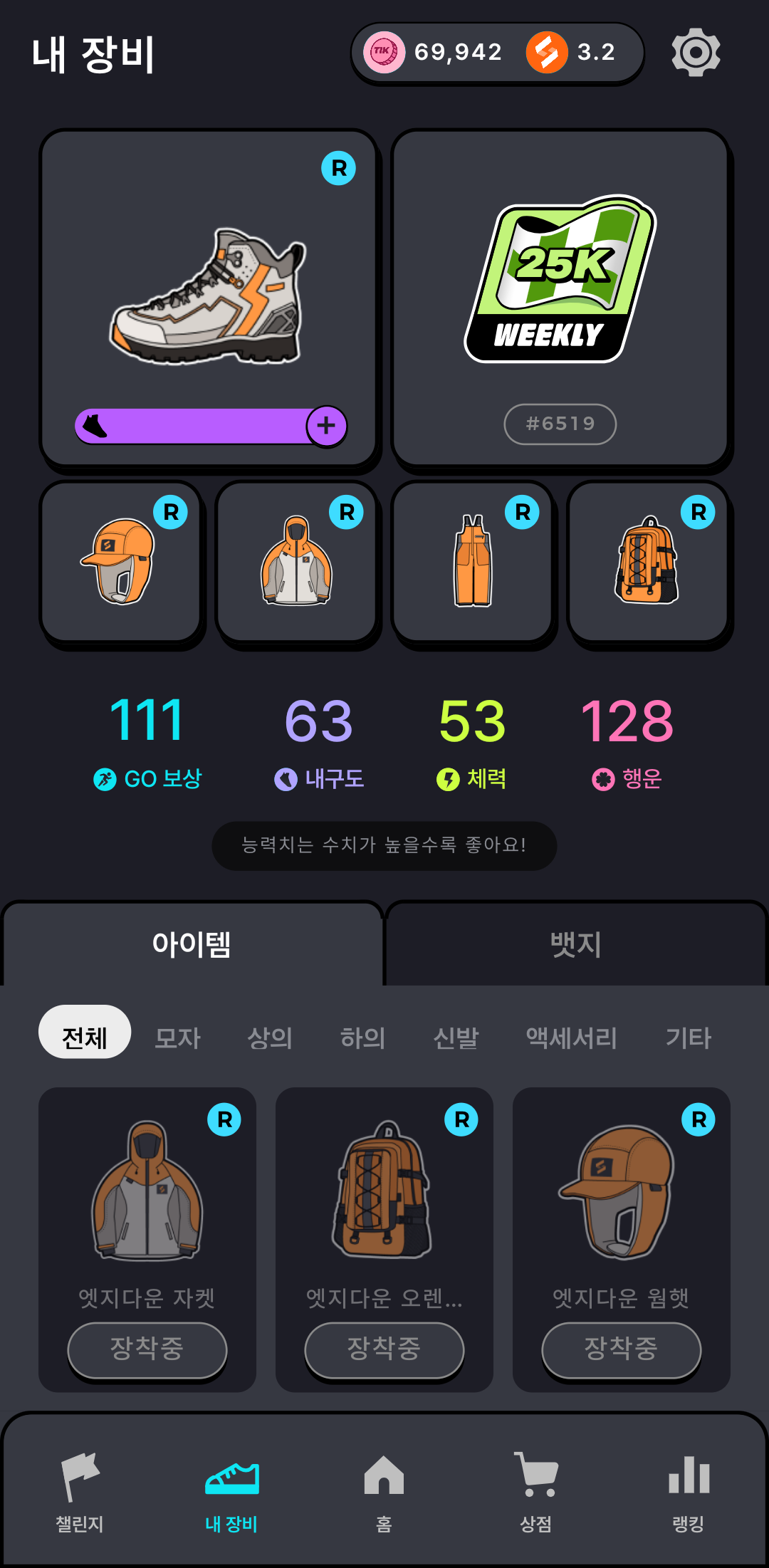 체력이나 신발 내구도가 닳게 되면 충전을 해줘야하는데...