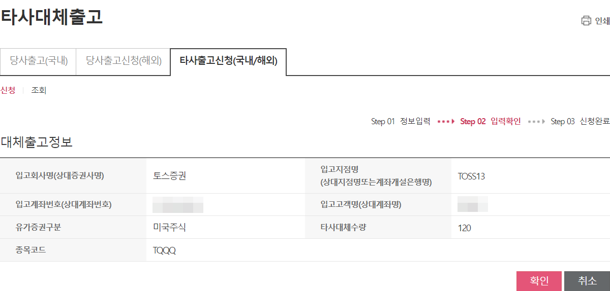 신한투자증권은 대체출고 (타 증권사로 이관)