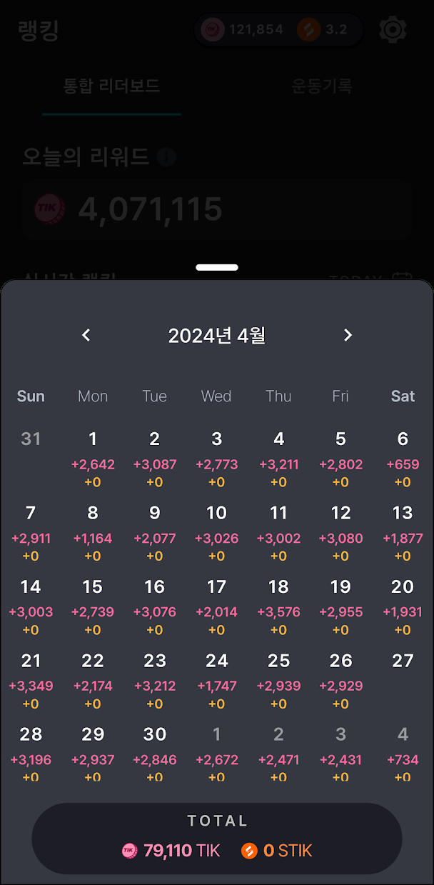 4월에 79,110 TIK에 비해