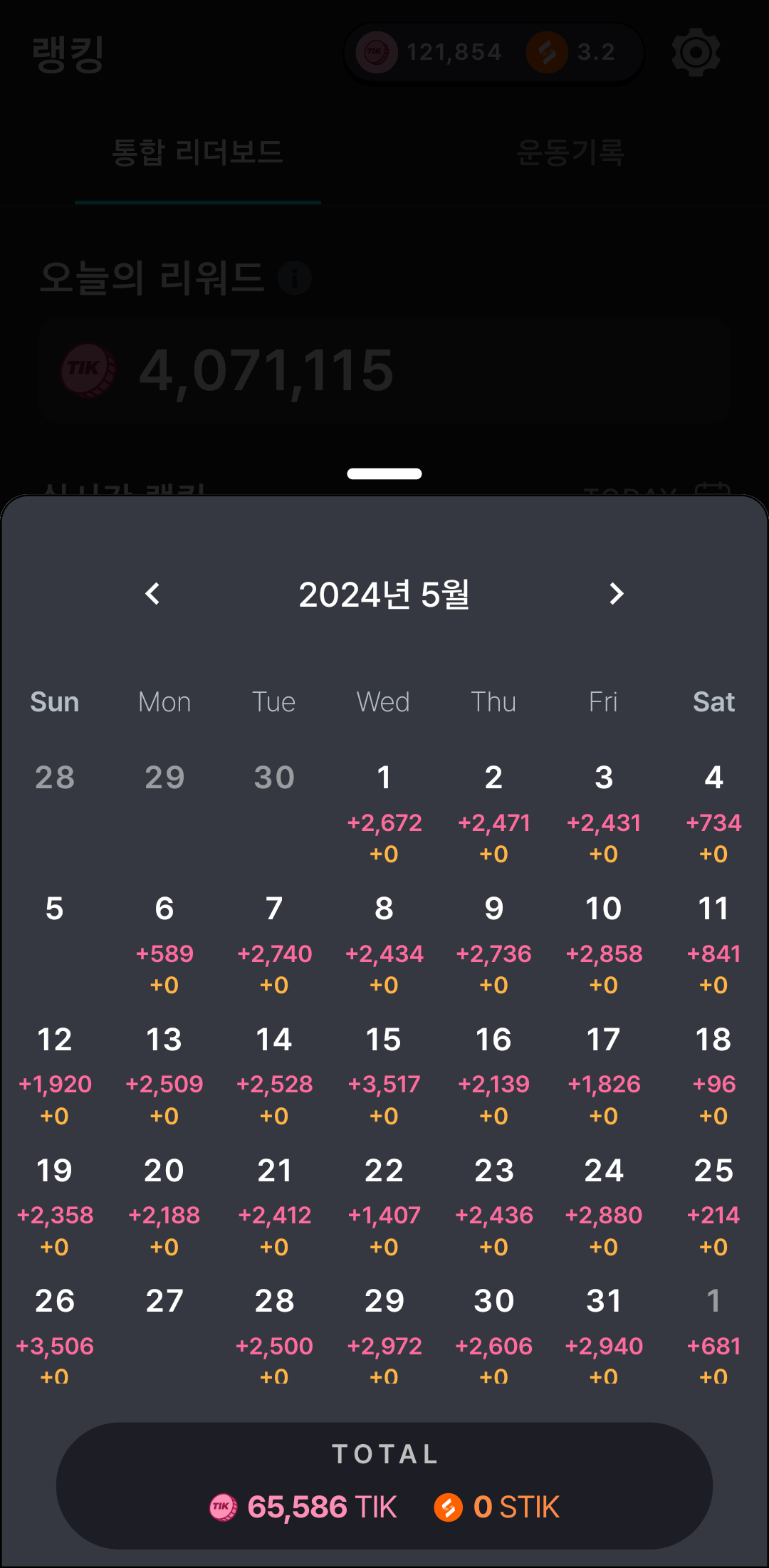 5월엔 65,586 TIK 을 정산 받았다.